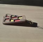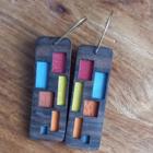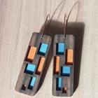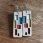 Le motif de cette boucle d'oreille est inspiré d'une oeuvre de Sonia Delaunay. L'idée est ici de juxtaposer des carrés de couleur et de jouer sur des effets de profondeur.